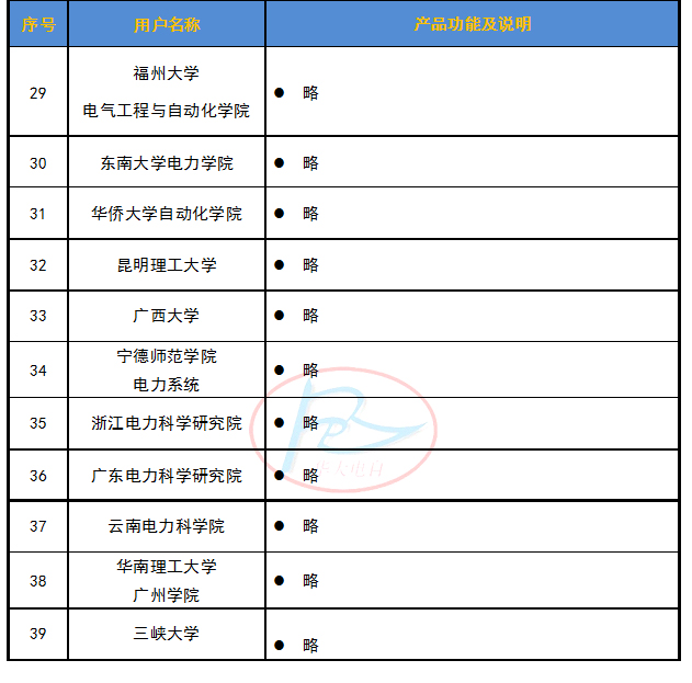電力系統動態模擬試驗系統用戶一覽表